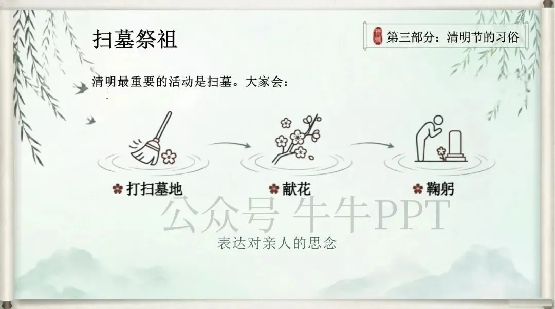 【清明节主题课件】清明时节知多少,传统节日的文化与思念(PPT+讲稿+教学设计)