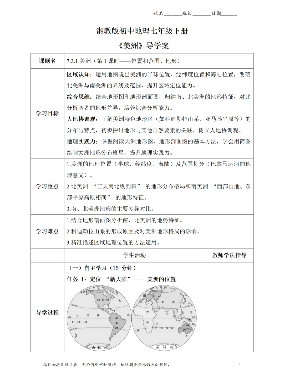 今日重点推荐湘教版七下地理《美洲1》34页精品课件聚焦教学实效。