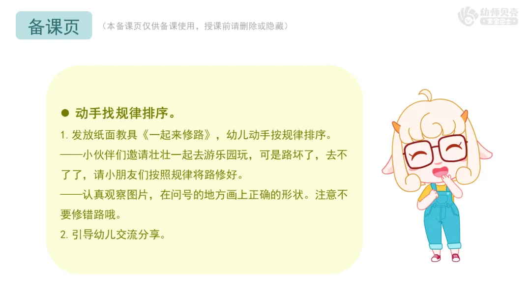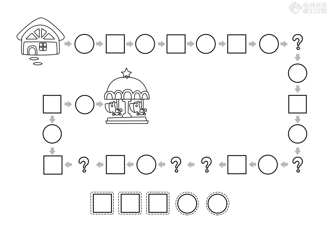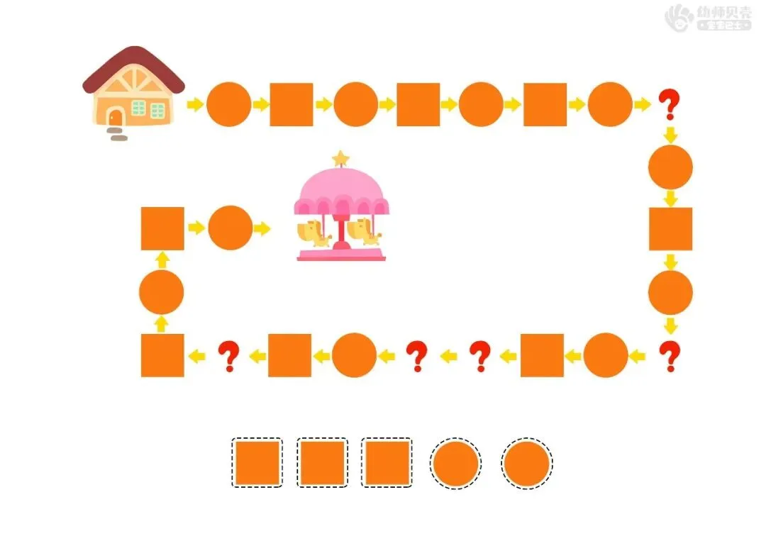 ——小伙伴们邀请壮壮一起去游乐园玩,可是路坏了,去不了了,请小朋友们按照规律将路修好。