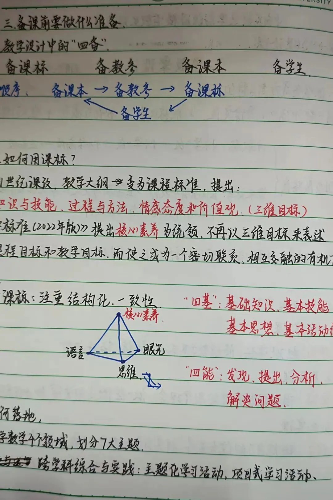向阳老师特别强调,备课前的准备是教学的重要环节,可以从“四备”入手,即:备课标、备教参、备课本、备学生。此外,教学的设计也很关键,应大致遵循“教学目标—教学评价—教学反思”的逻辑架构,并以自己真实的教学案例为例帮助同学们深入理解。