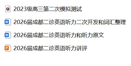 2026届高三成都二诊英语试卷、听力音频和答案