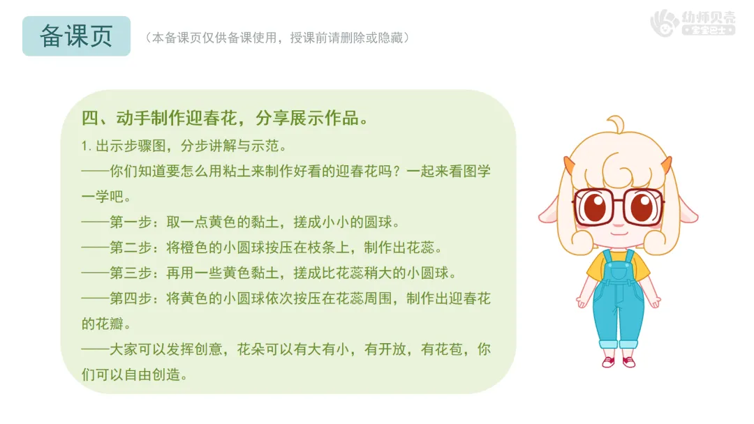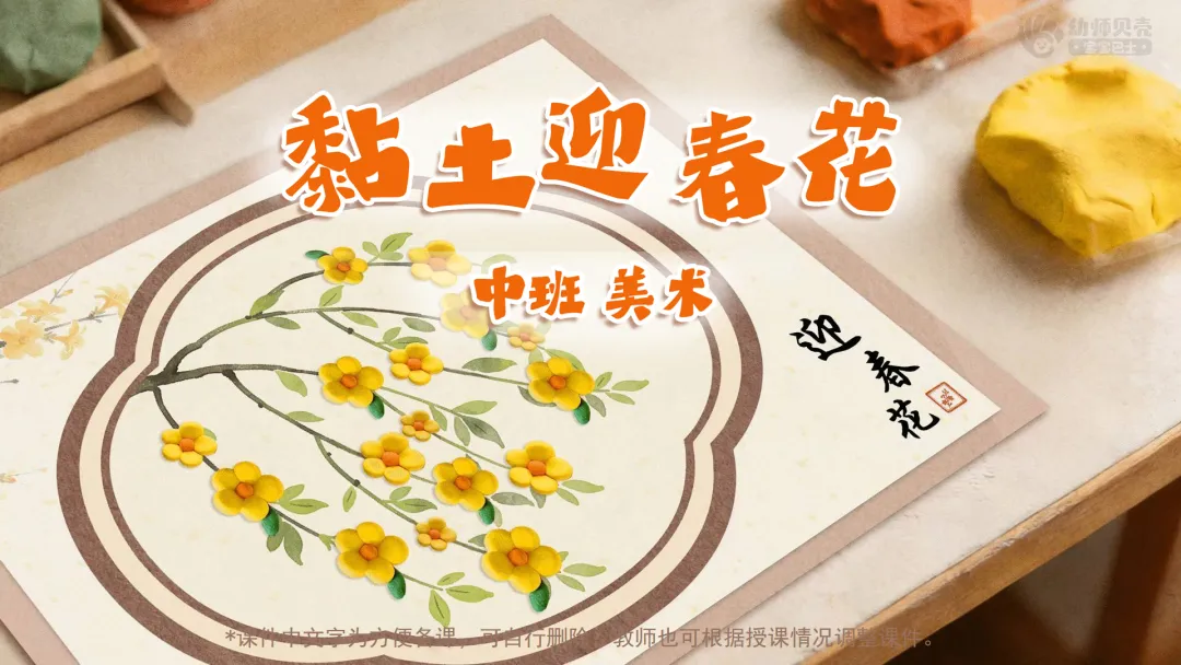 l课件准备:《黏土迎春花》PPT。