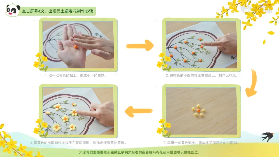 ——你们知道要怎么用粘土来制作好看的迎春花吗?一起来看图学一学吧。