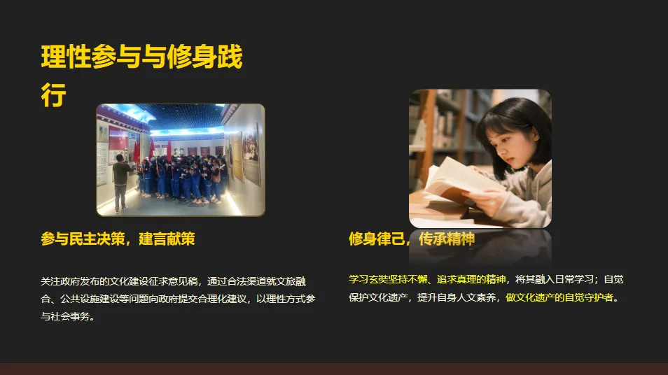 高正老师所在的学校位于洛阳市下属的偃师区,面对强国建设的宏伟目标,我们偃师区,我们青年人该从哪个/哪些方面入手做出自己应有的贡献呢?我把这个问题向同学们提出,希望大家结合本地方方面面的条件,结合我们的资源禀赋,思考以下——强国建设,我们何为?这里的我们,既包涵我们当地何为,又可以包括我们这代人何为?