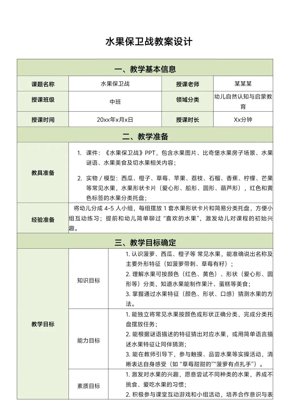 中小班科学《水果保卫战》教案