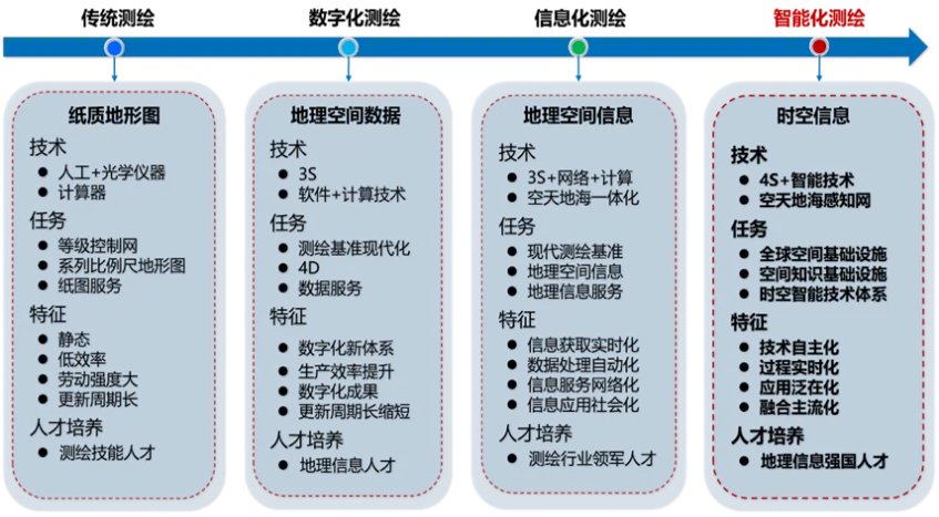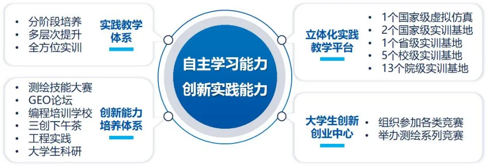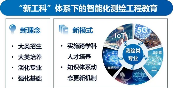 智能化测绘是地理空间信息与空间技术、观测技术、数据科学等学科交叉融合的创新发展,专业内涵从“数据-信息”发展到“数据-信息-知识-决策”,以“111计划”强化国际化培养,以“校企协同、科研与大创融合”强化新技术学习能力培养,实现从“测绘行业领军人才培养”发展到“地理信息强国的国际化人才培养”的定位转变。