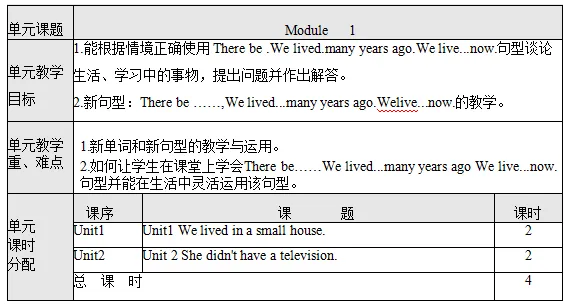 模块 | Module1 | 课题 | She didn’t have a television. | 课时数 | 2 |
