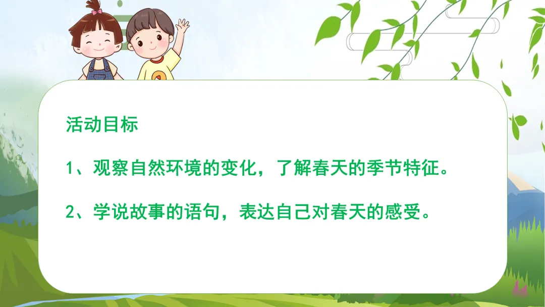 1、观察自然环境的变化,了解春天的季节特征。