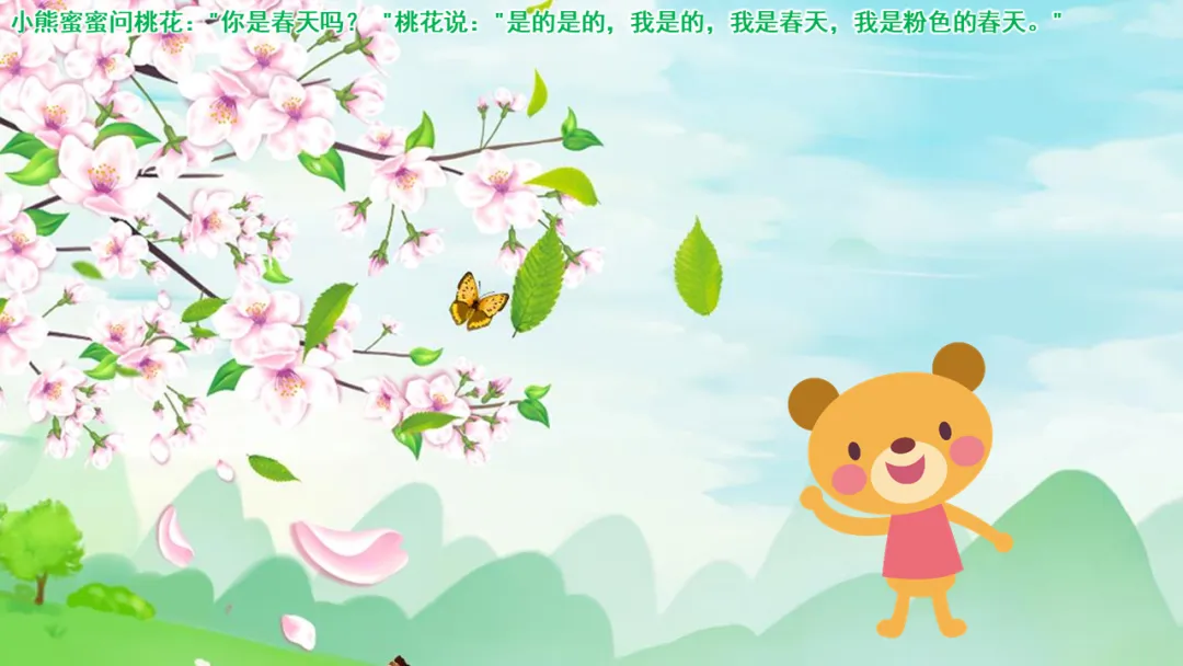 欣赏故事:小熊蜜蜜问桃花:“你是春天吗?”桃花说:“是的是的,我是的,我