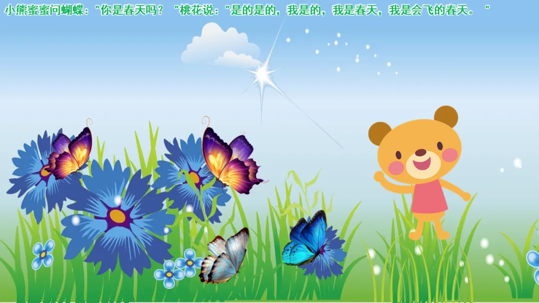 欣赏故事:小熊蜜蜜问蝴蝶:“你是春天吗?” 蝴蝶说:“是的是的,我是的,