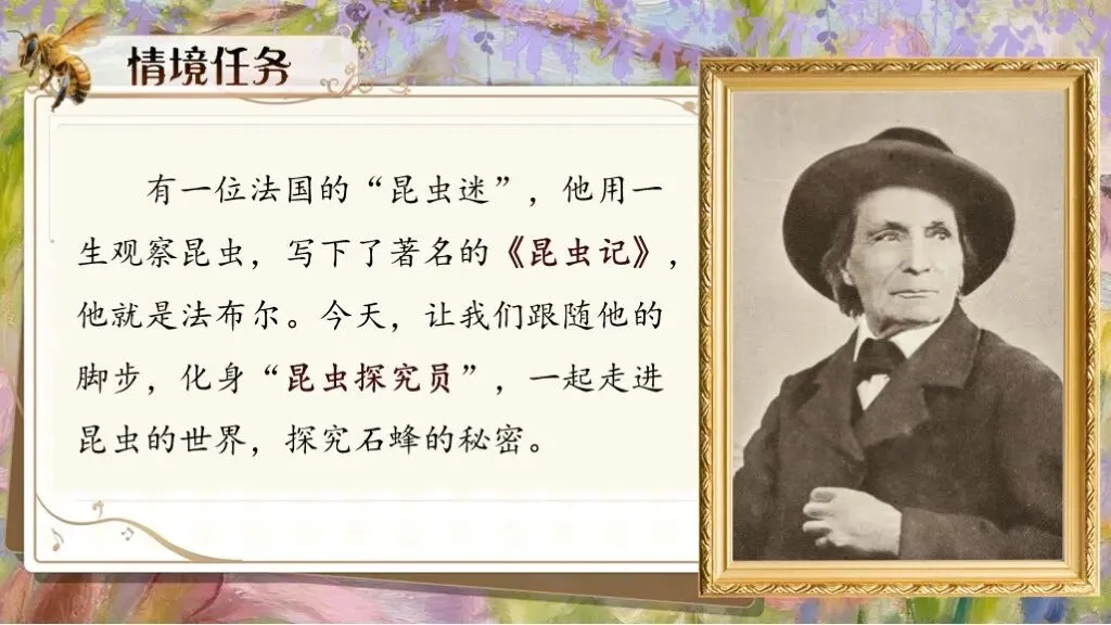 有一位法国的“昆虫迷”,他用一生观察昆虫,写下了著名的《昆虫记》,他就是法布尔。今天,让我们跟随他的脚步,化身“昆虫探究员”,一起走进昆虫的世界,探究石蜂的秘密。