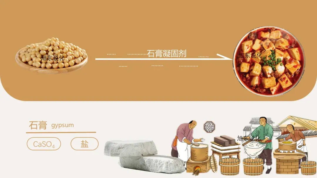 播放《舌尖上的中国》豆腐制作片段,展示豆腐制作流程图(泡豆 — 磨浆 — 滤渣 — 煮沸 — 点卤 — 成型),提出问题:“豆浆为何能变成豆腐?关键的‘点卤’环节用到的凝固剂是什么?常见的盐类凝固剂有石膏(CaSO₄)和盐卤(MgCl₂),如何通过化学方法鉴别它们?” 引出本节课主题:“探究豆腐制作中的点卤剂 ——‘盐’专题复习”。