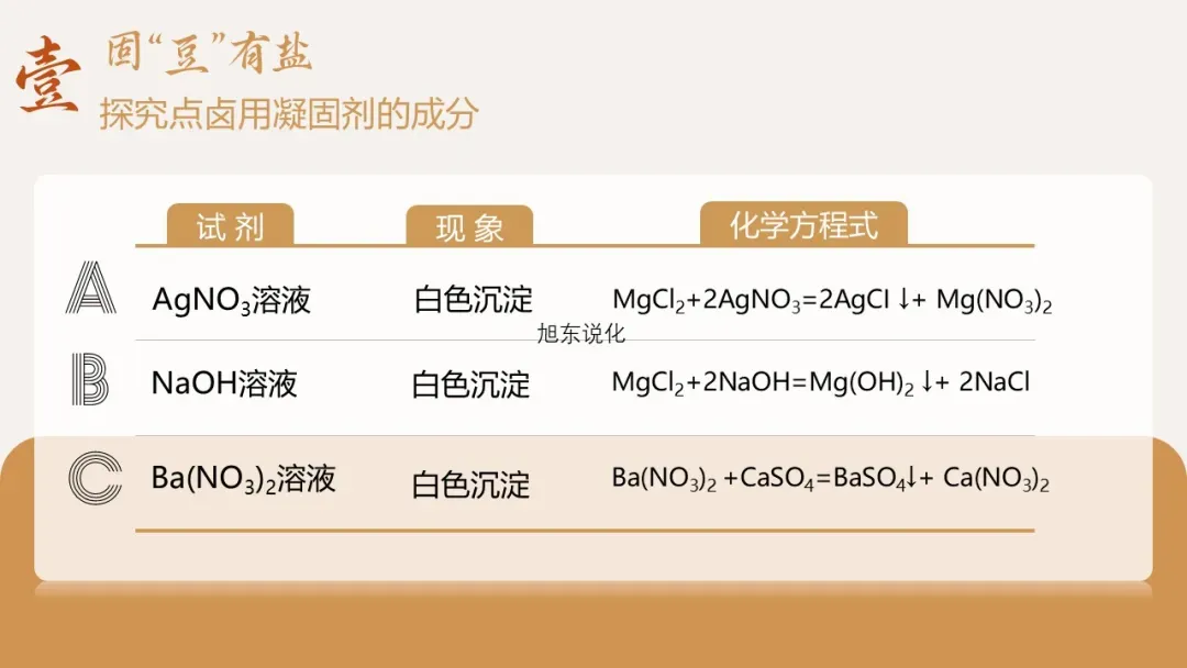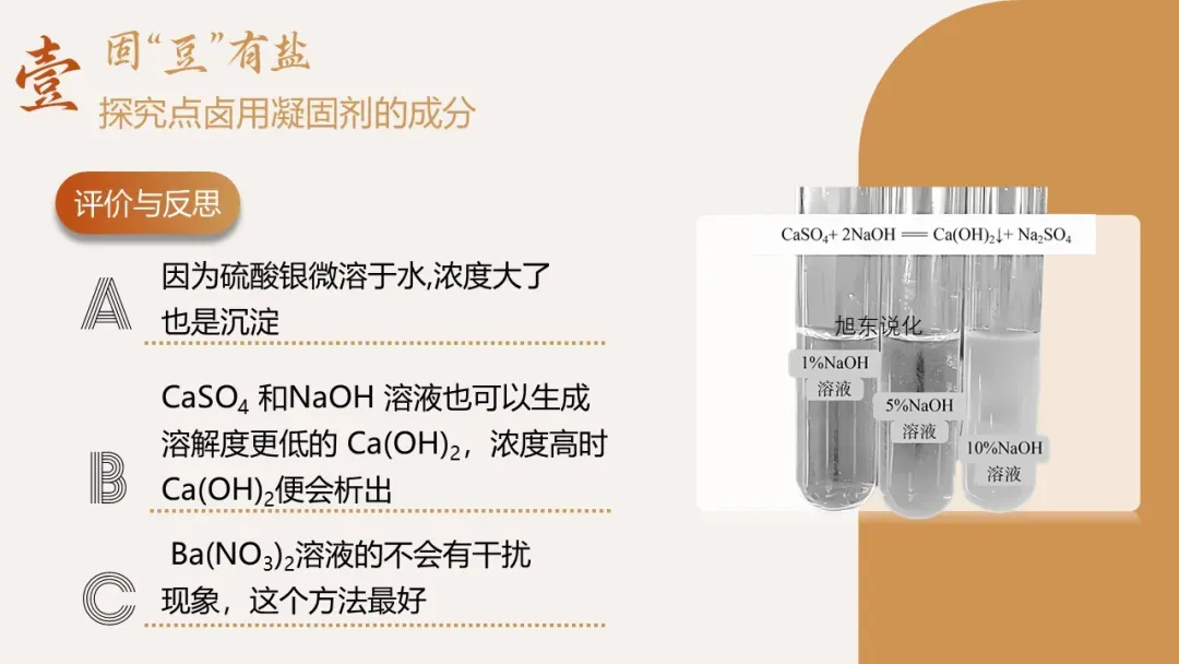 (二)环节一:固 “豆” 有盐 —— 探究点卤剂的成分(15 分钟)
