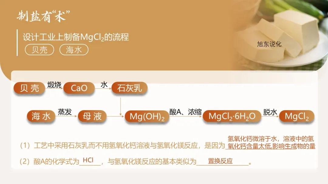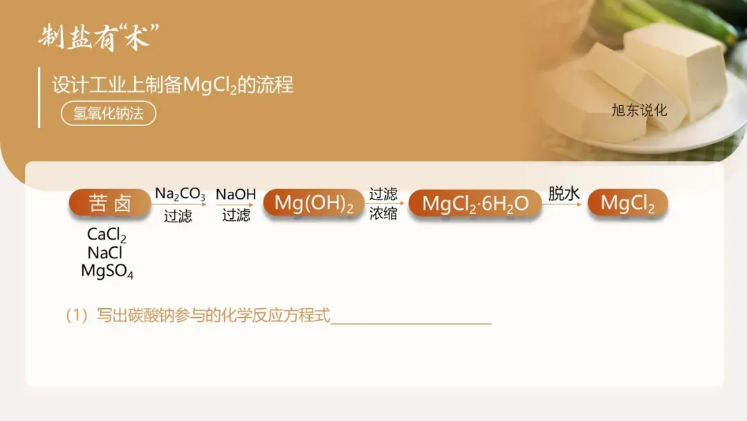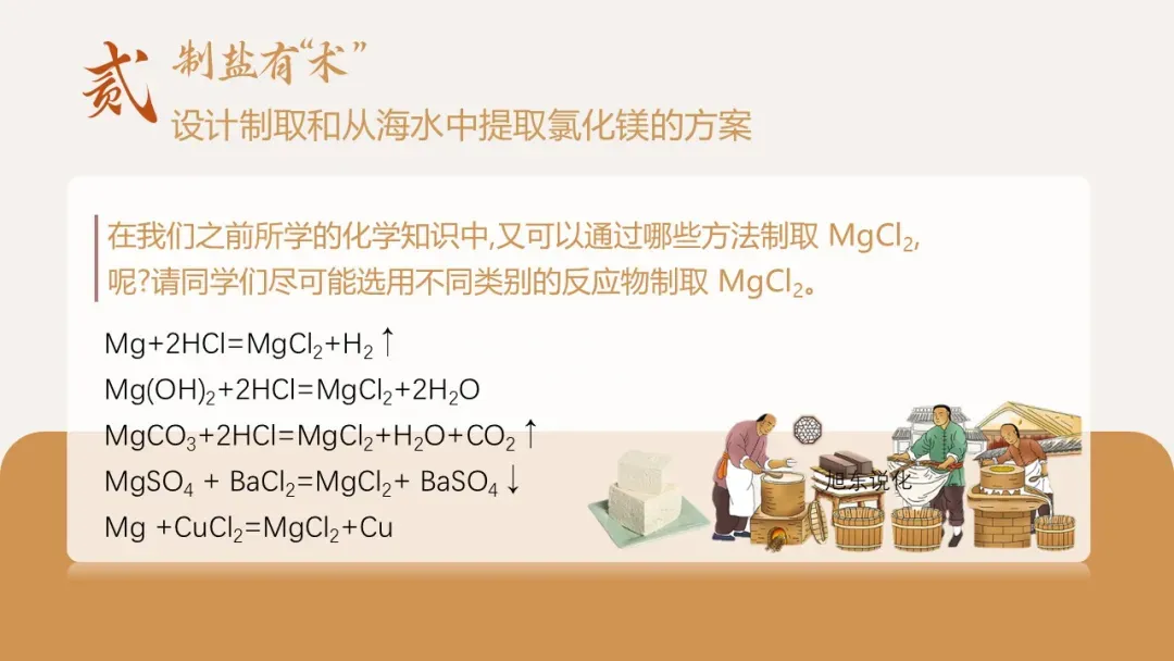 我们已经确定点卤剂是 MgCl₂,那么这种重要的盐类物质如何制备?工业上如何从丰富的海水资源中提取 MgCl₂?接下来进入第二环节:制 “盐” 有术 —— 设计氯化镁的制备与工业提取方案。