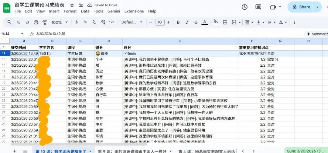 部署的那天晚上,我打开表格,看到一行行数据自动填入——谁的“把”字句语序写反了,谁在连词成句上反复出错,哪个词全班有六个人标记了“不确定”。