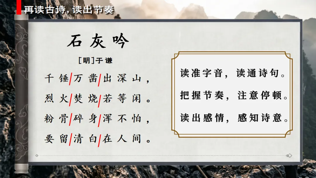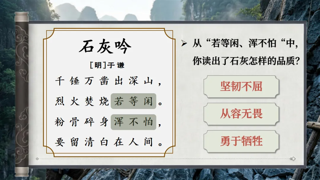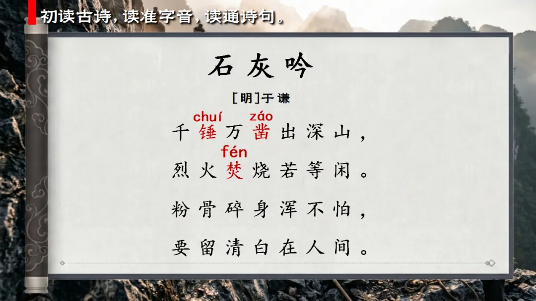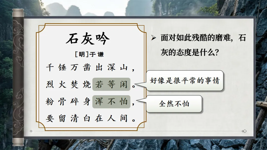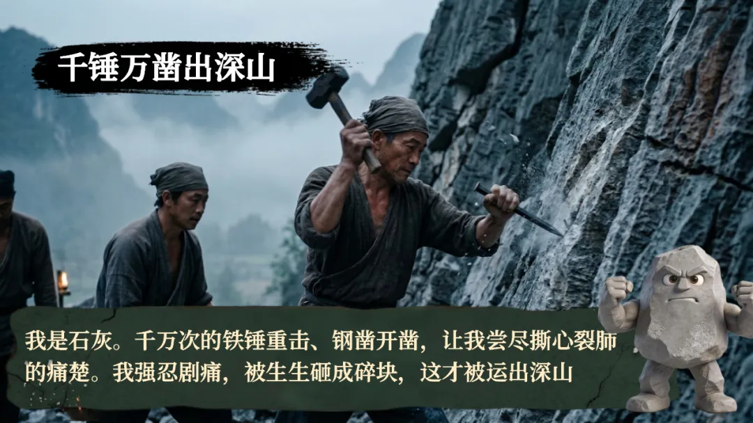 >六下古诗三首《石灰吟》AI赋能课件 | 以石灰明心立志,以正气传世留名(课件+AI视频+教案)