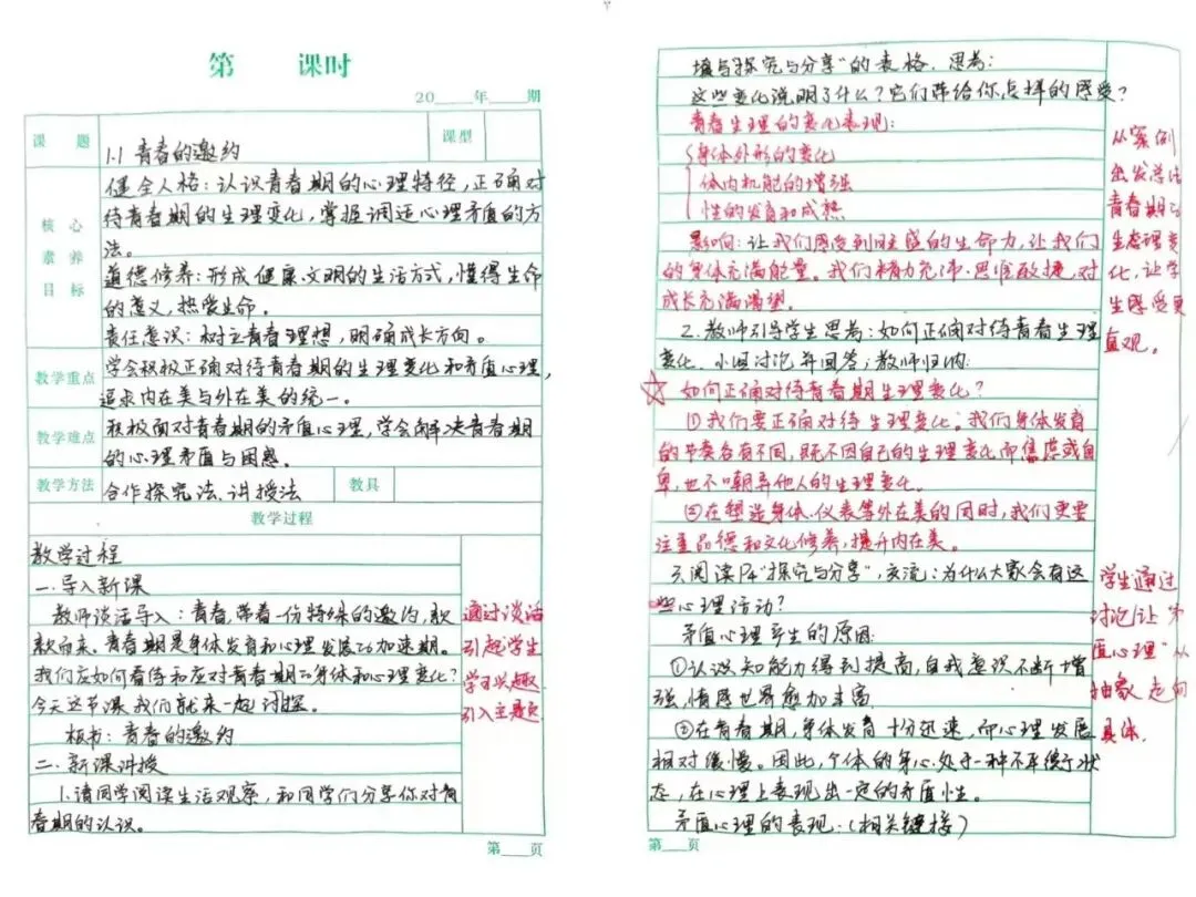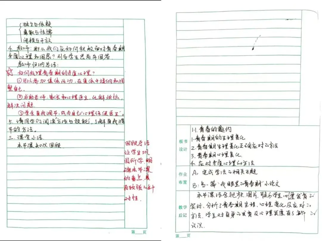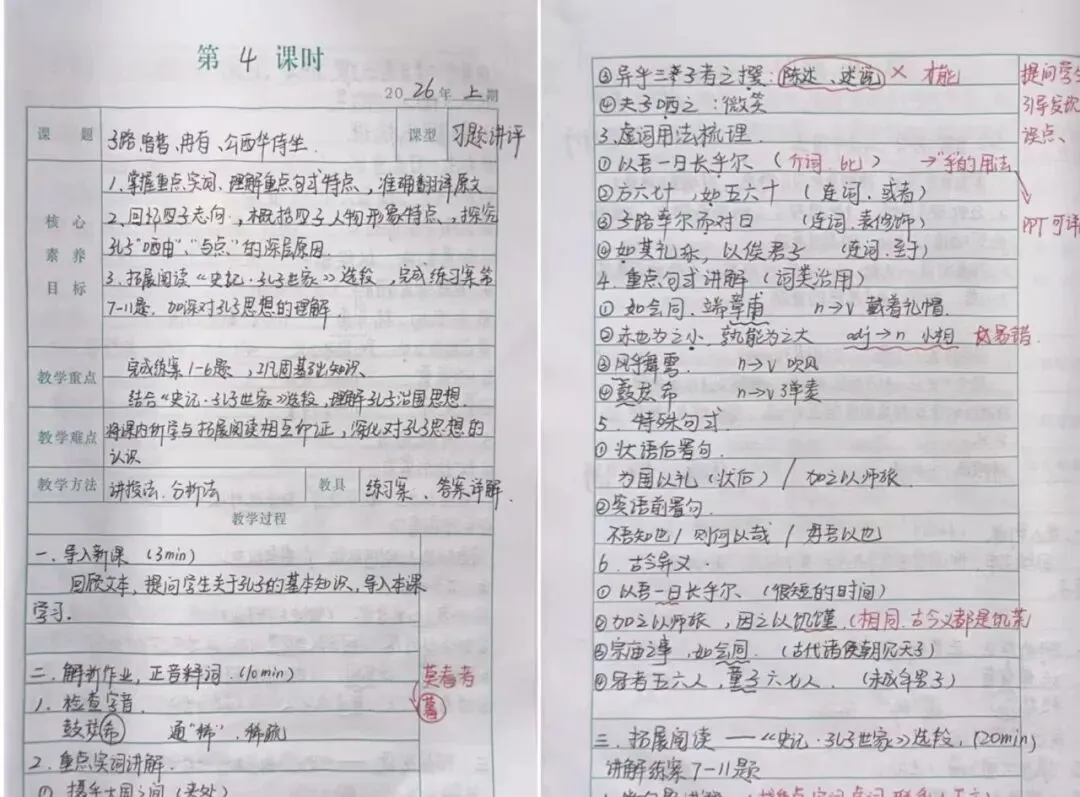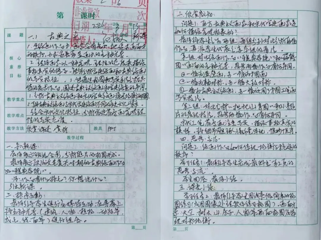一页页规范工整的教案,凝聚着老师们深耕教学的思考;一处处细致批注与精心设计,彰显着严谨笃学的育人态度。教案虽小,却承载着对课堂的敬畏、对学生的用心,于方寸之间,开出教育之花。