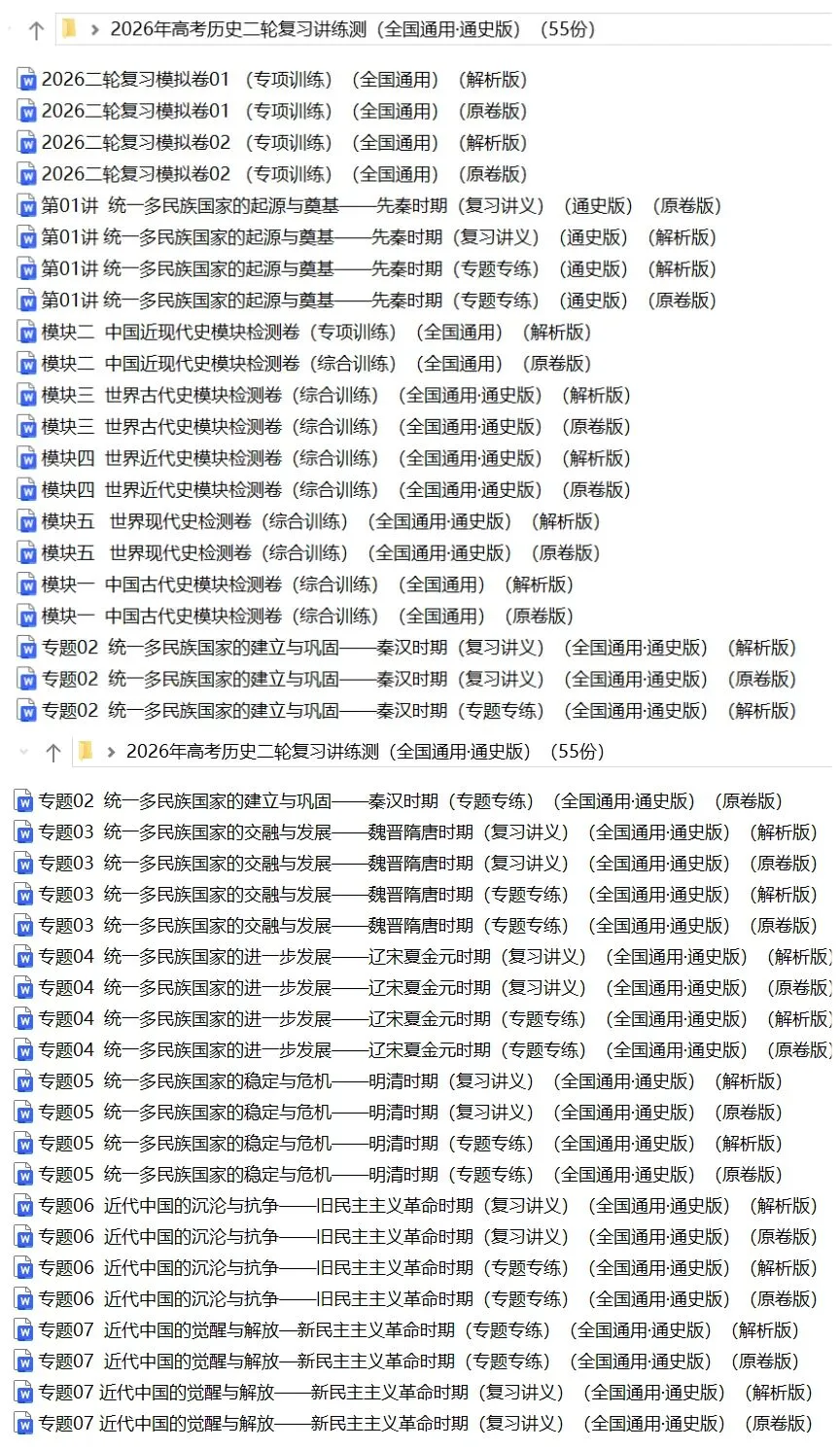 >【2026年高考历史】二轮复习讲义+课件+专项训练+综合检测55份含全解全析(全国通用·通史版)全部完整电子版文档文末有下载方式