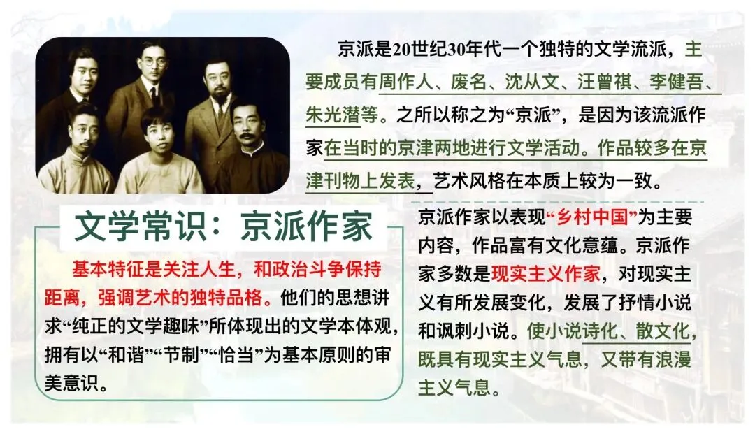 语言建构与运用:品味沈从文散文化小说中清新质朴、富有诗意的语言风格。