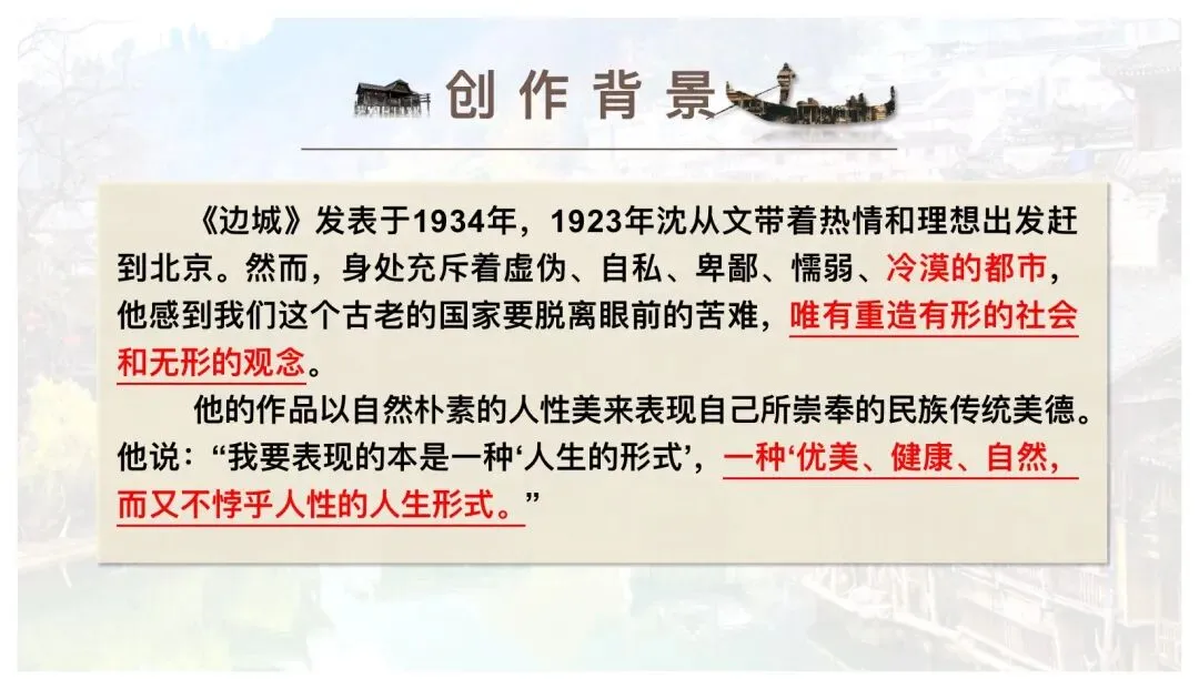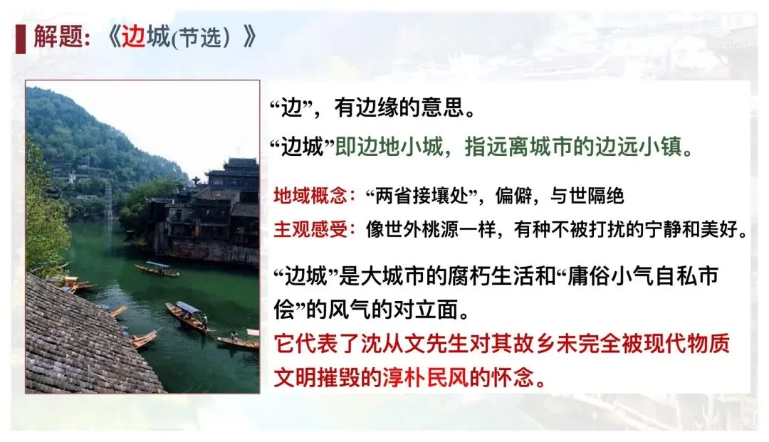 思维发展与提升:辩证思考“边城”的象征意义,探究“人性美”与现实冲突的深层内涵。