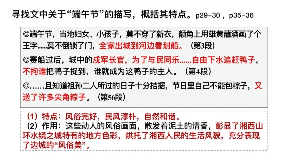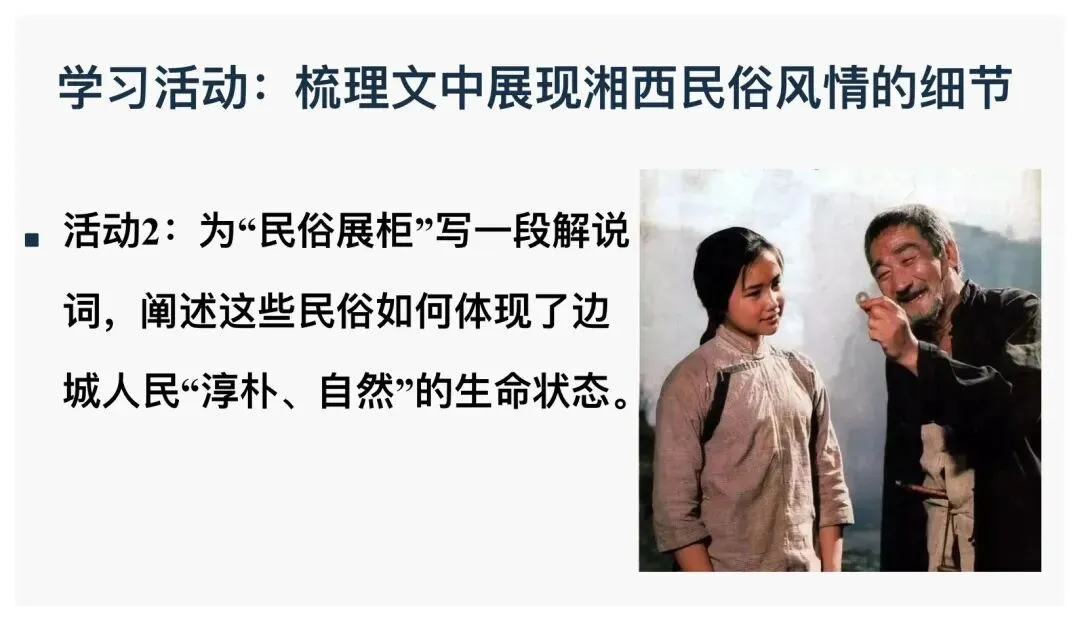 设计意图:聚焦风俗画,感受湘西特有的生命活力与未被礼教束缚的自然人性。