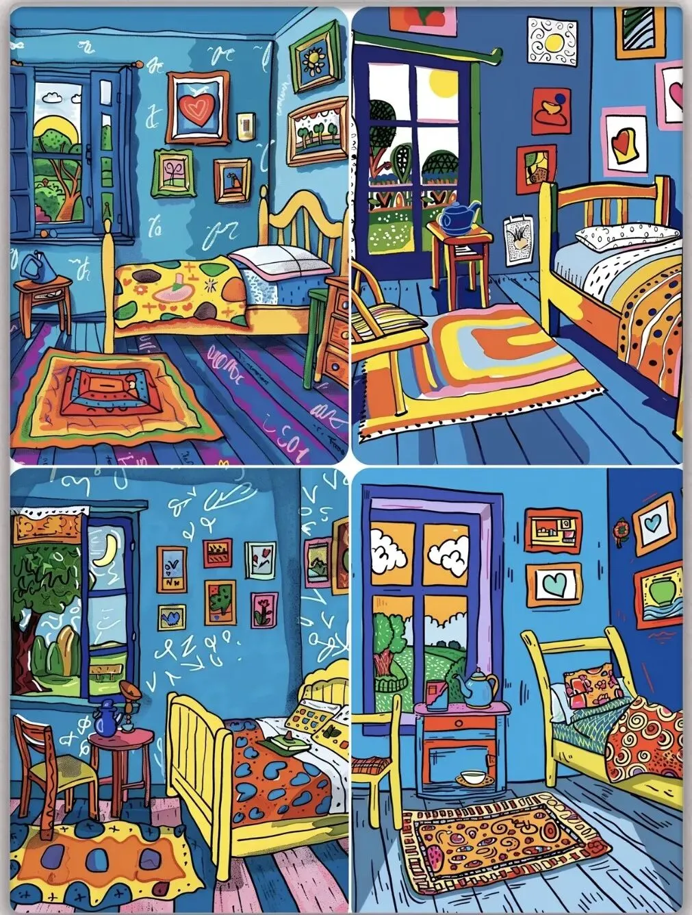 2. 拓展:尝试用两点透视画有转角的房间,或用对比色搭配营造不同氛围,感受更多创作乐趣。