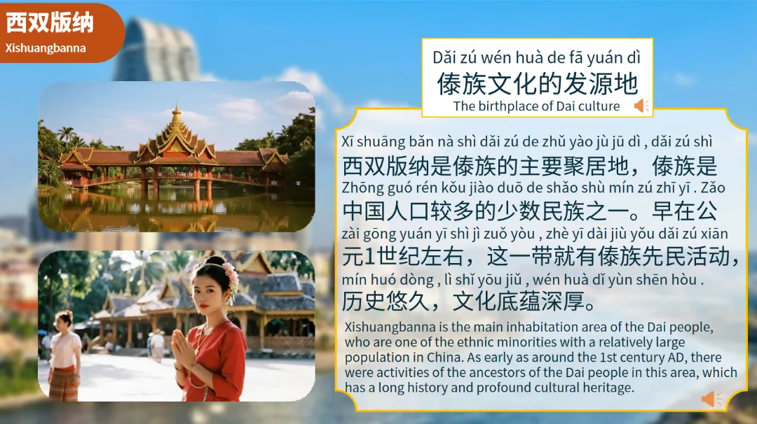 课件深入介绍了西双版纳作为傣族主要聚居地的历史和文化背景,讲述了傣族先民早在公元1世纪左右就在此活动的悠久历史。