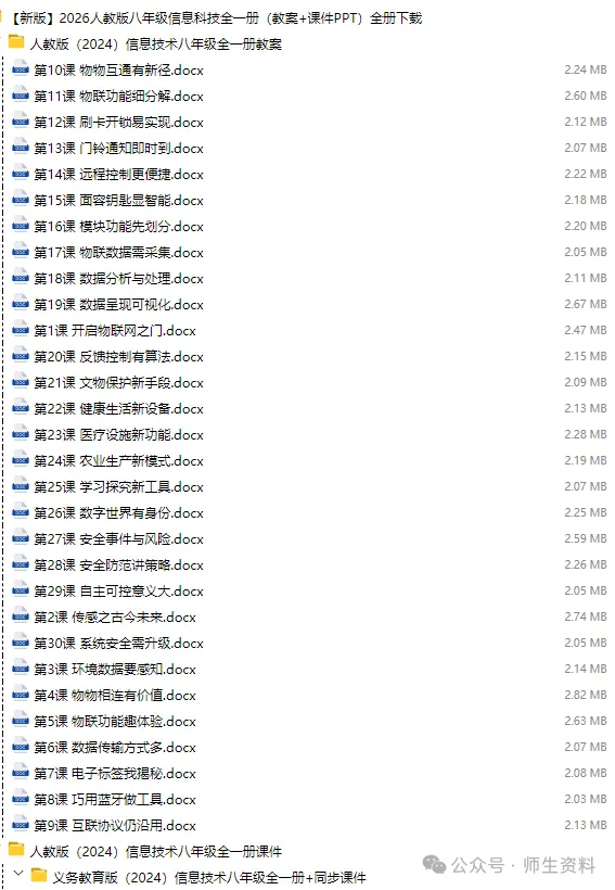当前位置:首页>教案>2026春人教版八年级信息科技全1册教案+PPT课件打包