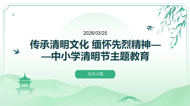 为助力班主任高效开展清明节主题教育工作、落实立德树人根本任务,书文小筑已精心整理完成「传承清明文化 缅怀先烈精神——中小学清明节主题教育」配套教案及课件,供各位老师直接下载使用。