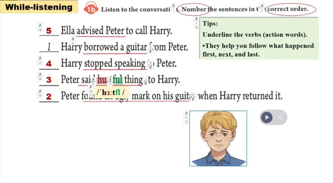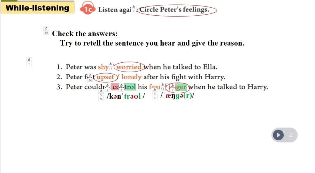 情绪单词输入之后,书上的任务是先完成排序,我在此做了一个交换。先完成听并圈情感单词,再完成排序。这样过度更自然点。