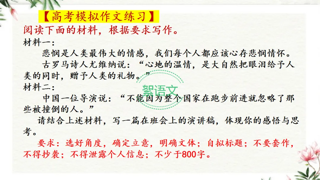 2026年统编版高一语文必修下册第二单元“良知与悲悯”作文教学导学案