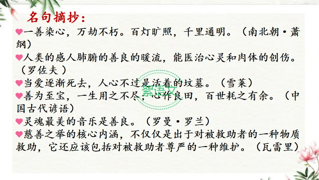 善为至宝,一生用之不尽;心作良田,百世耗之有余。愿我们心存悲悯,拥有兼济天下的力量。