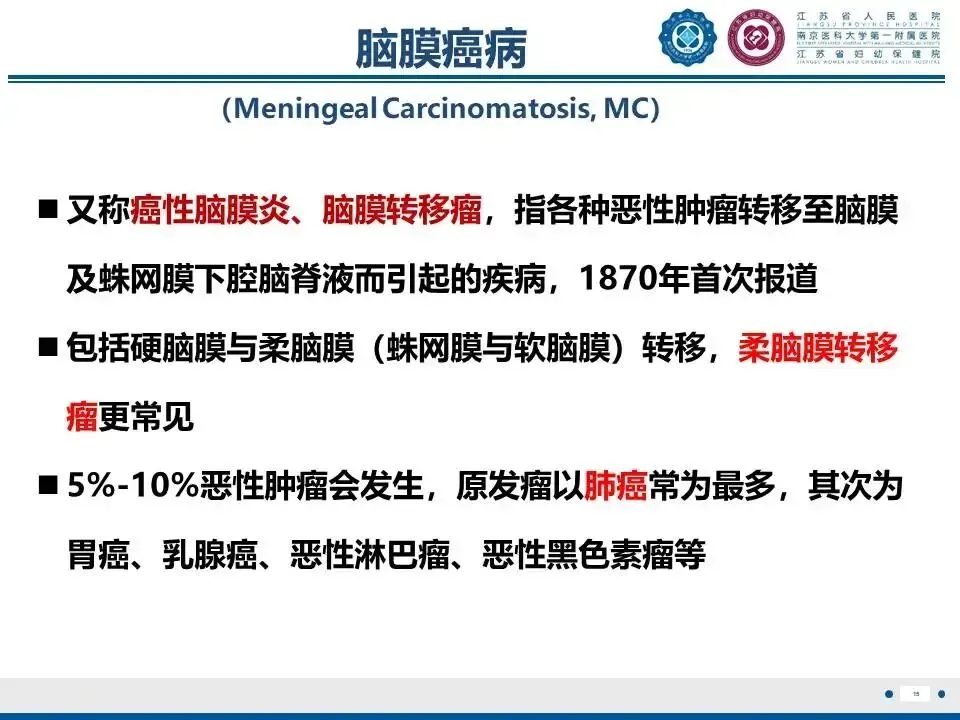 脑膜癌病(脑膜转移)是恶性肿瘤脑转移的主要类型之一肿瘤发病率的增高、患者总体生存期延长导致脑膜转移的发病率不断增高。脑膜转移(尤其是软脑膜转移)的患者预后极差,然而目前检出率和诊断存在被低估的情况。