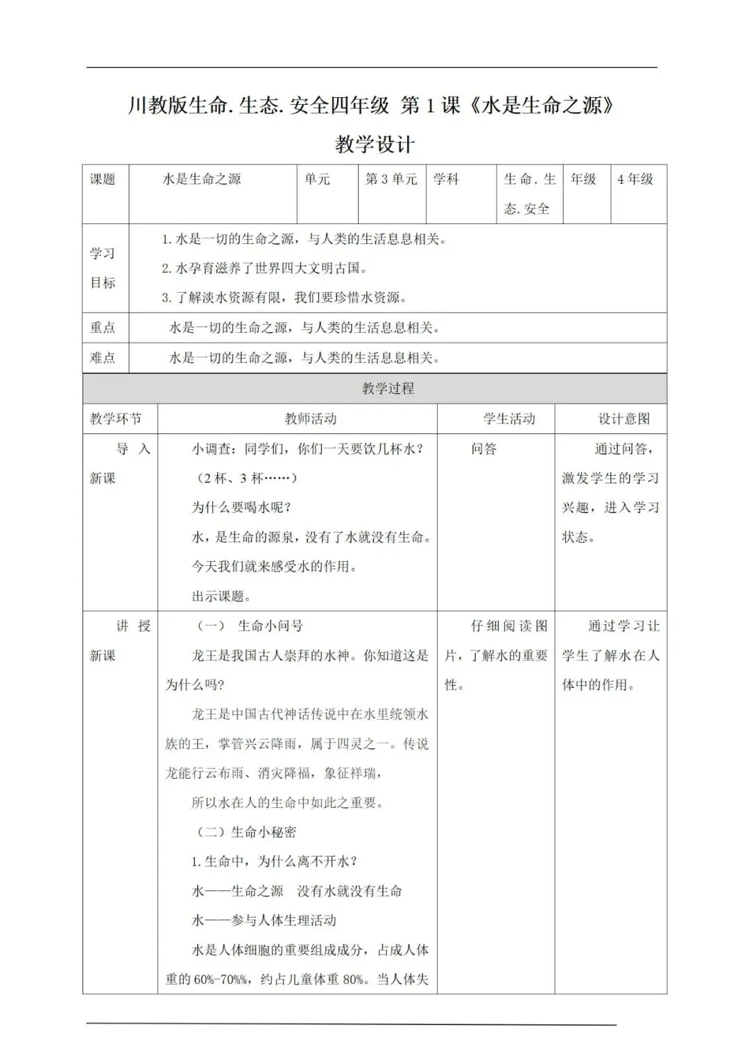 >人教川教版生命生态安全四年级下册教案+ppt课件,可下载编辑!