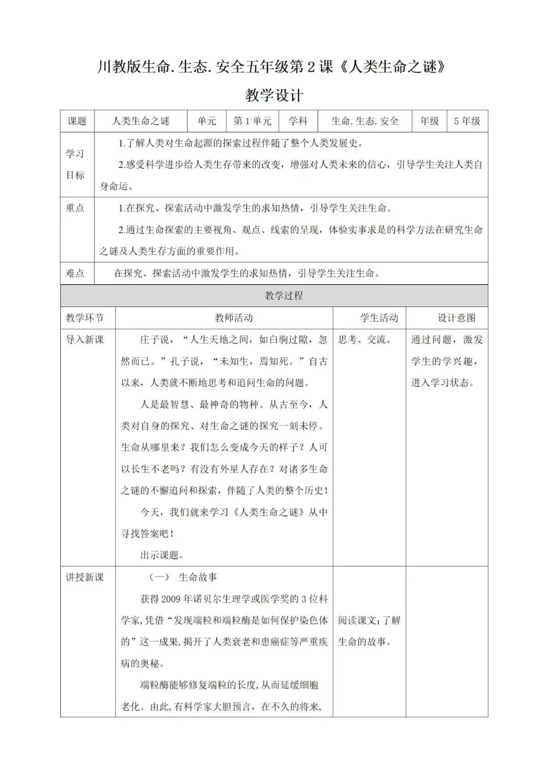 人教川教版生命生态安全五年级下册教案+ppt课件,可下载编辑!
