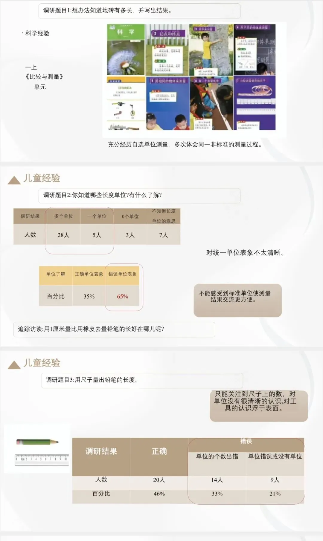 · 知识目标:掌握测量的基本原理、常用单位及换算。