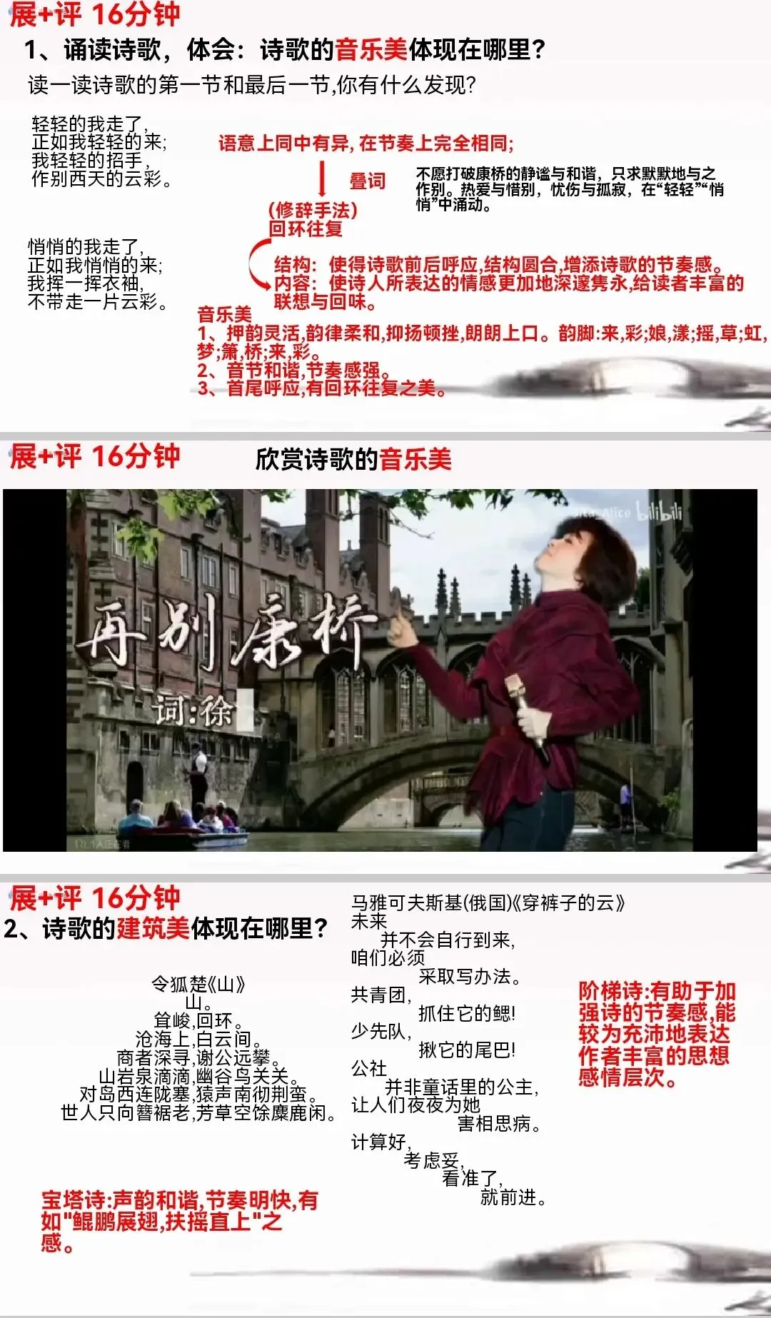 3.反复诵读,品味诗歌的意象和情感,把握诗意,感受诗歌“三美”:音乐美、建筑美。