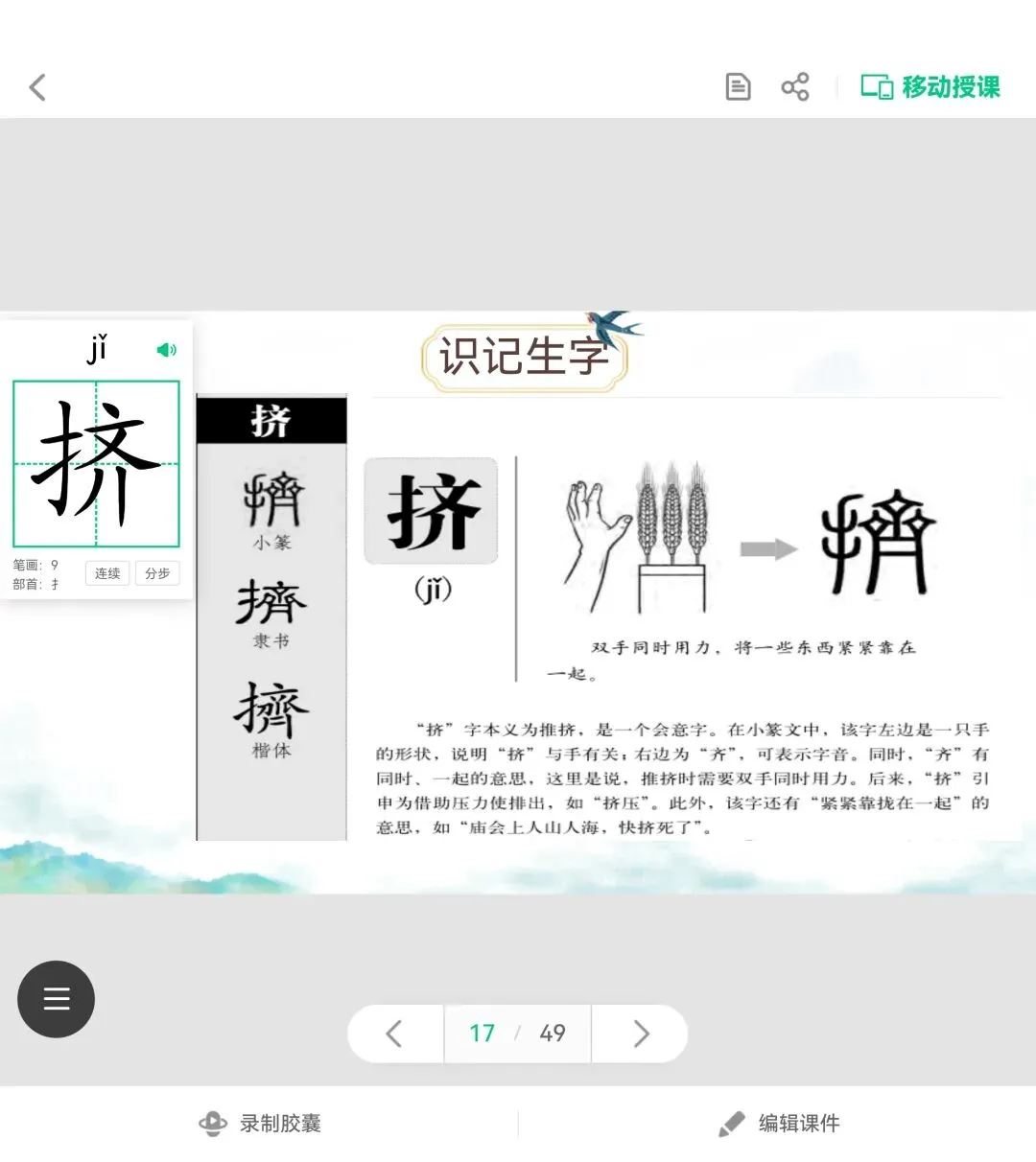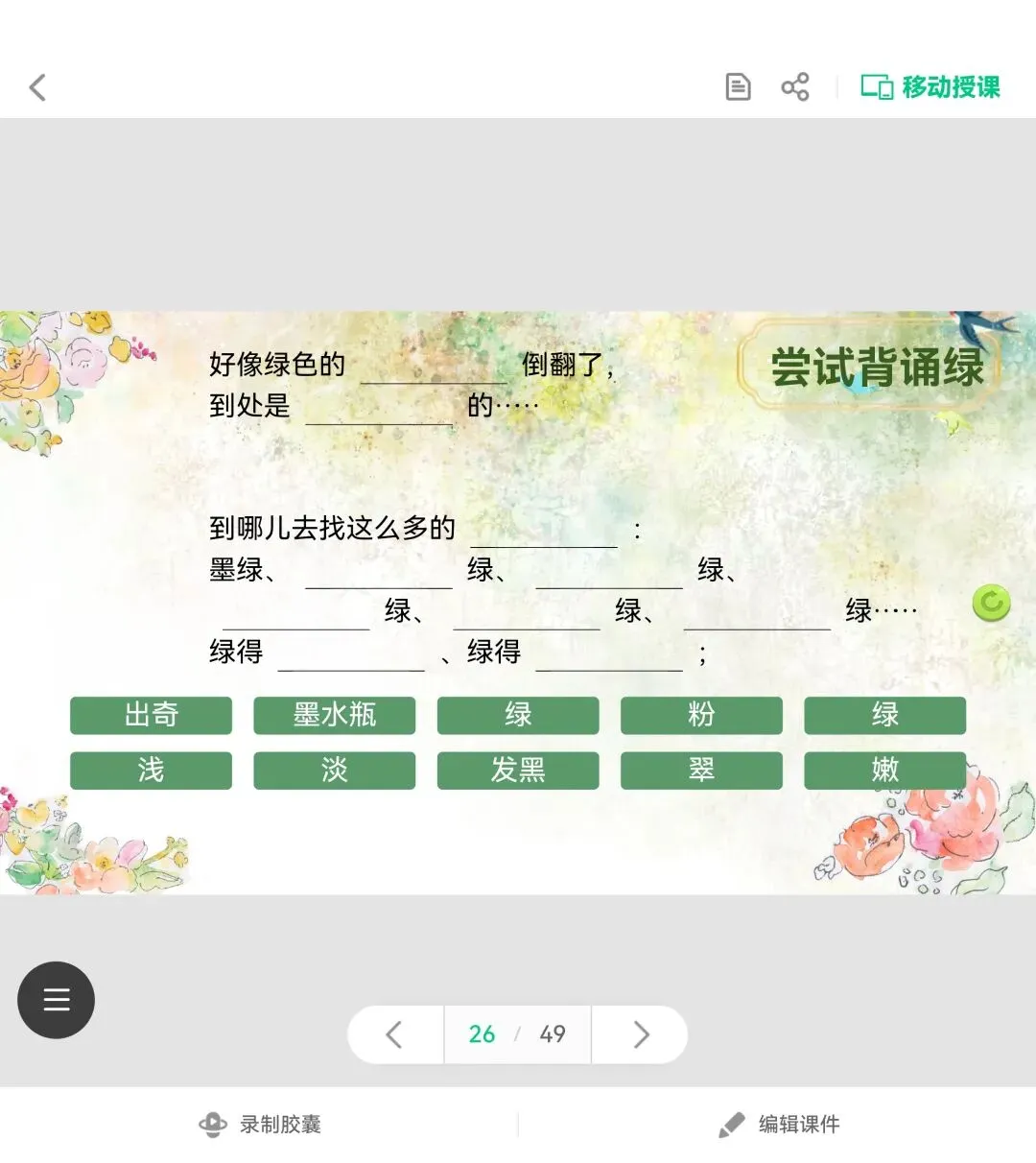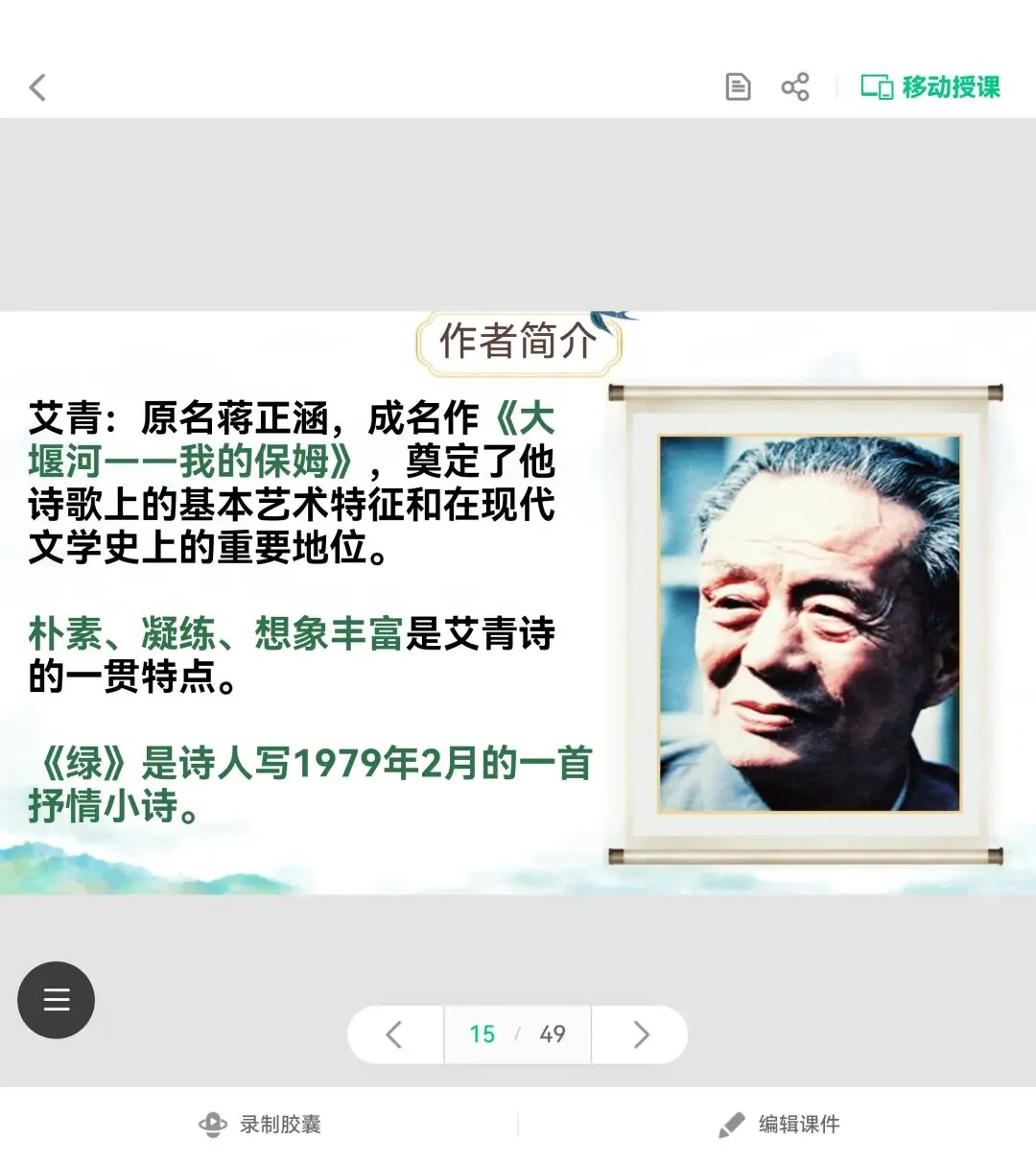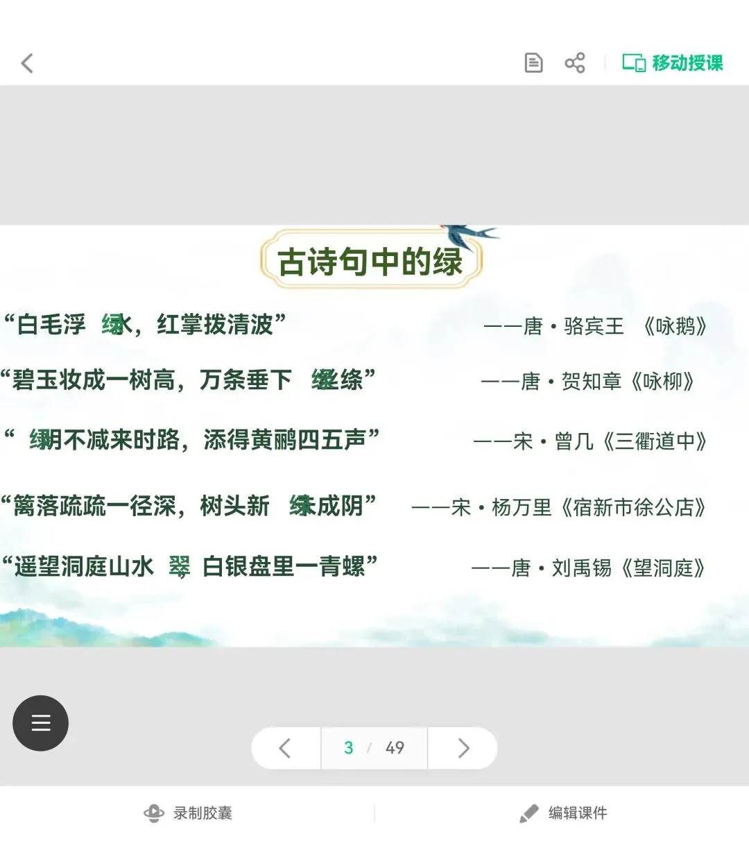 ”字,在手机上看有跳动,找到了常见的古诗句的绿,都是小学阶段学习过的,导入课文较容易😀。