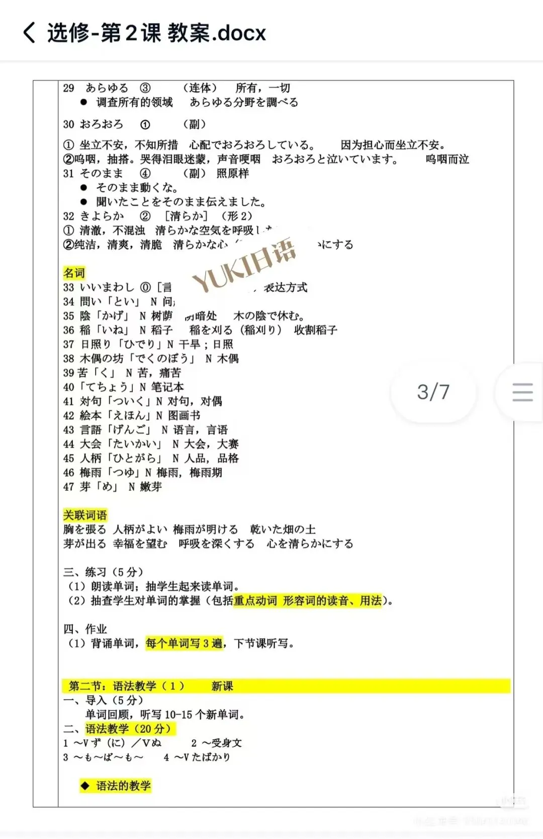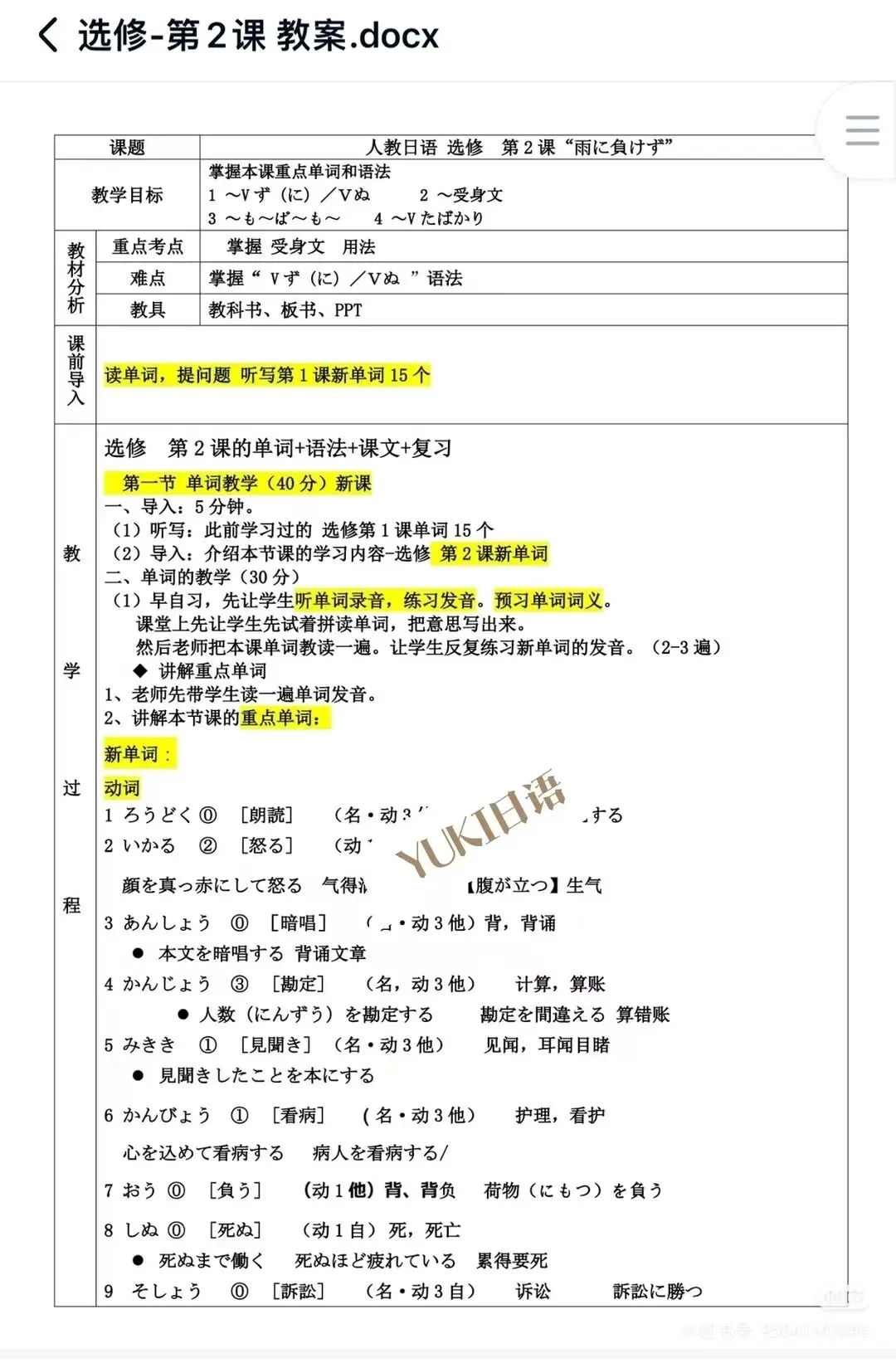 --选修日语每课教案可配合YUKI日语@YUKI日语🌸 老师制作的配套—人教选修日语-课件和教案和新题型周测,完型填空,完型阅读选择,来一起学习高中选修日语哦! 选修日语可侧重教学语法部分,单词和课文部分可以讲重点内容学习!