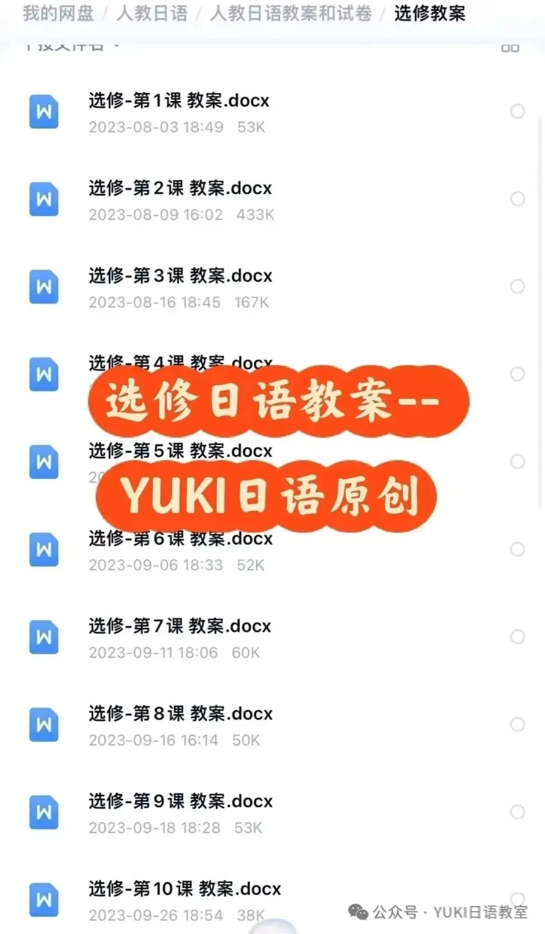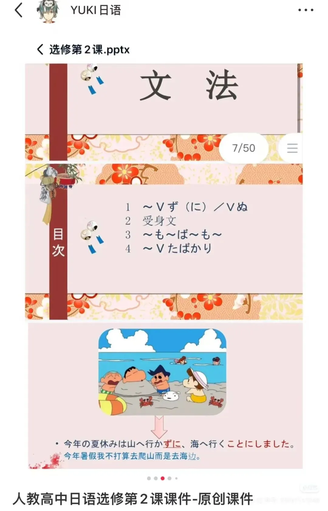 最近公众号,小红薯咸鱼等网络出现大量盗版盗售,本人@YUKI日语教室 -原创的人教版动漫课件,原创人教教案,配套人教七八九必修选修新题周测,新题型完形填空等资料的帖子和作者,请大家抵制盗版,发现以后告诉原创作者-@YUKI日语教室 可以送高考日语资料!