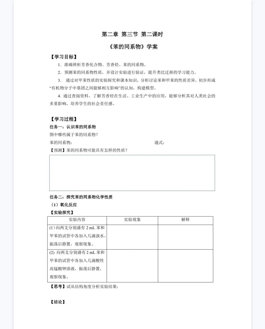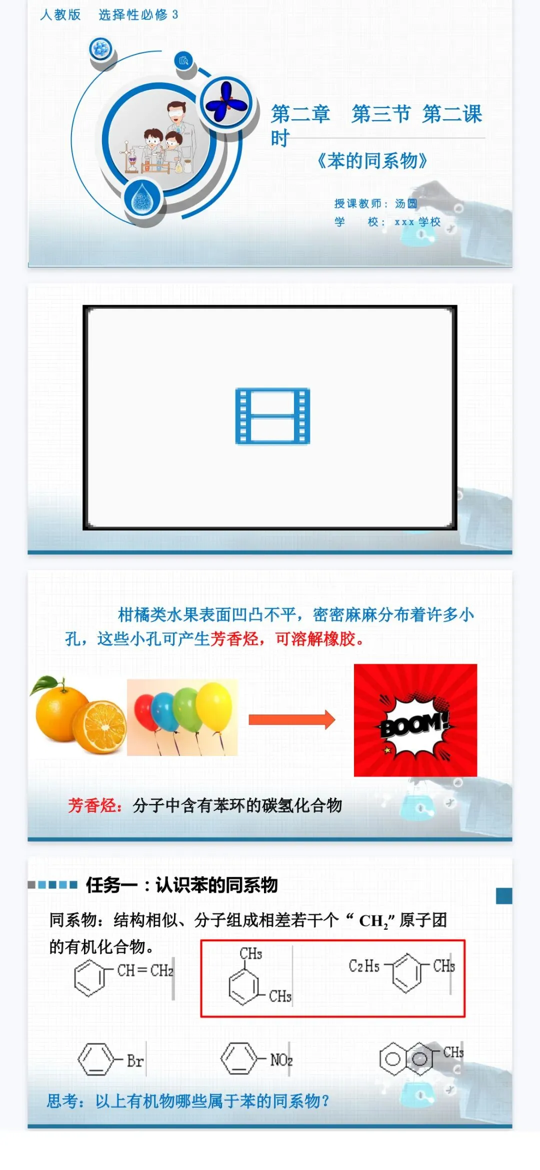 >【选修三10】高中化学《苯的同系物》课件+教学设计+学案设计
