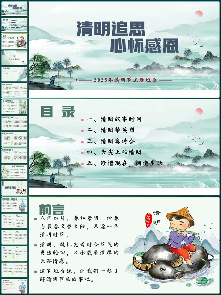 图片展示:【8308】【清明节班会】《清明追思心怀感恩》2025年清明节主题班会PPT(课件+教案+视频)(共37张ppt)