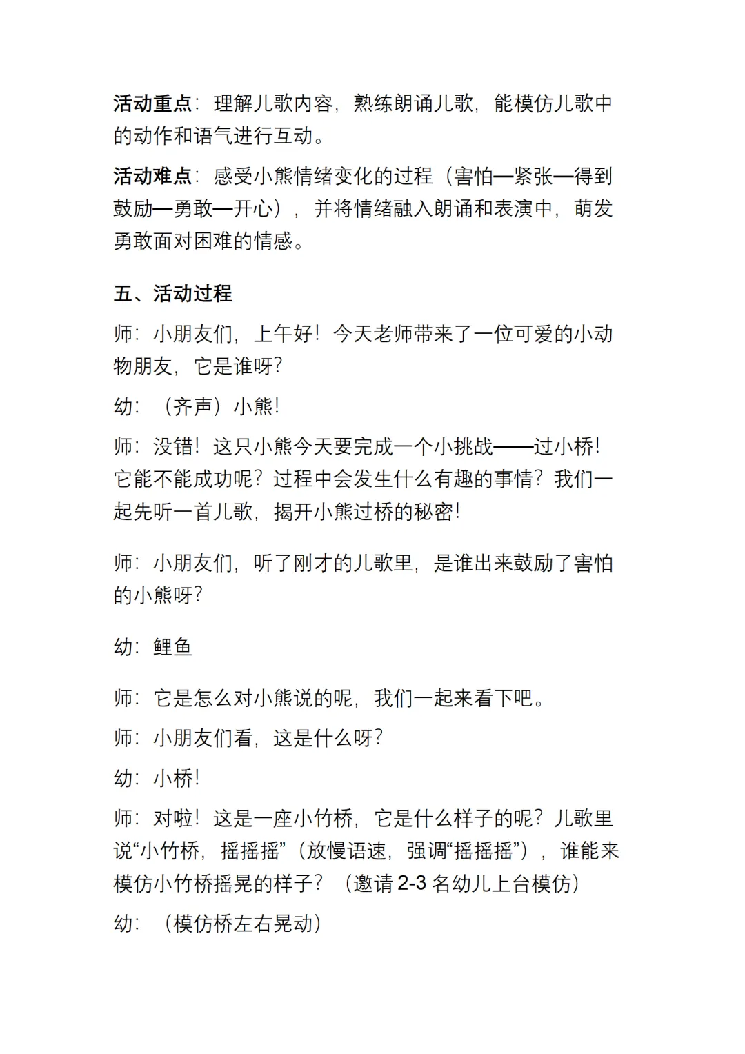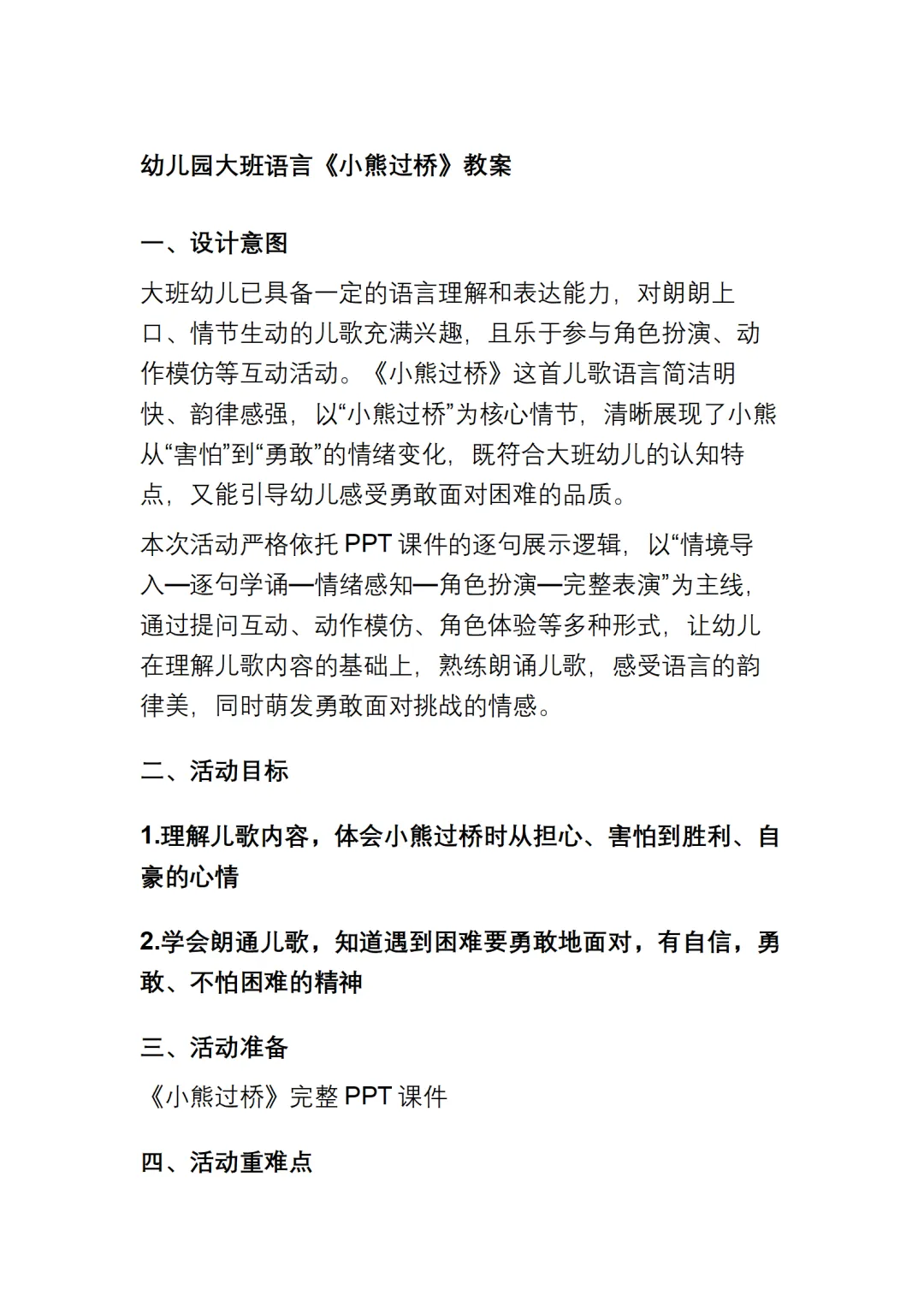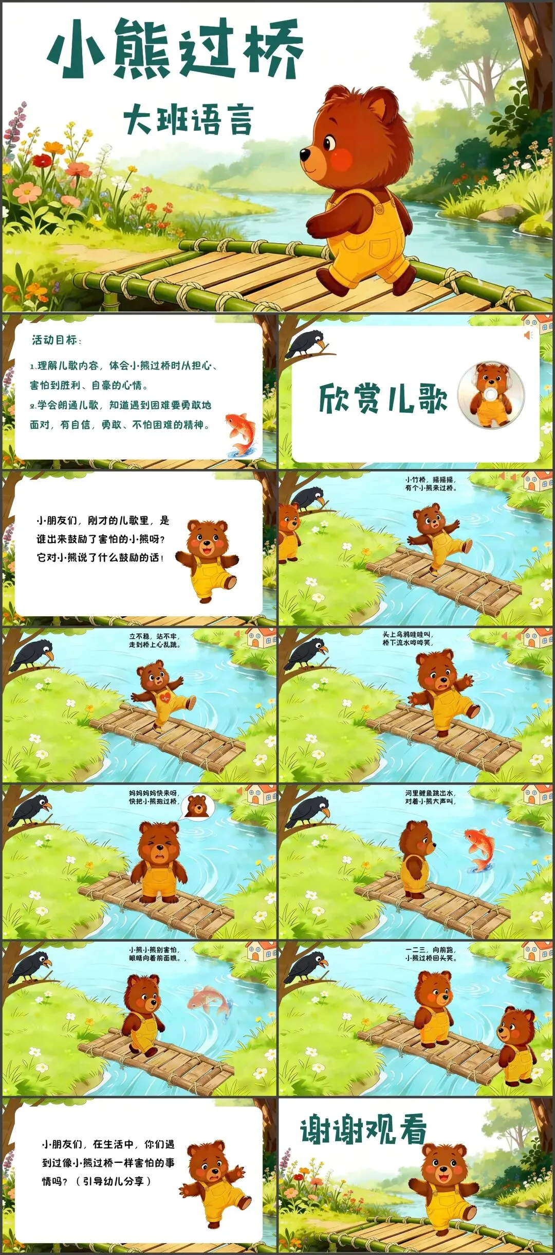 幼儿园大班语言《小熊过桥》动态PPT课件+教案+说课稿