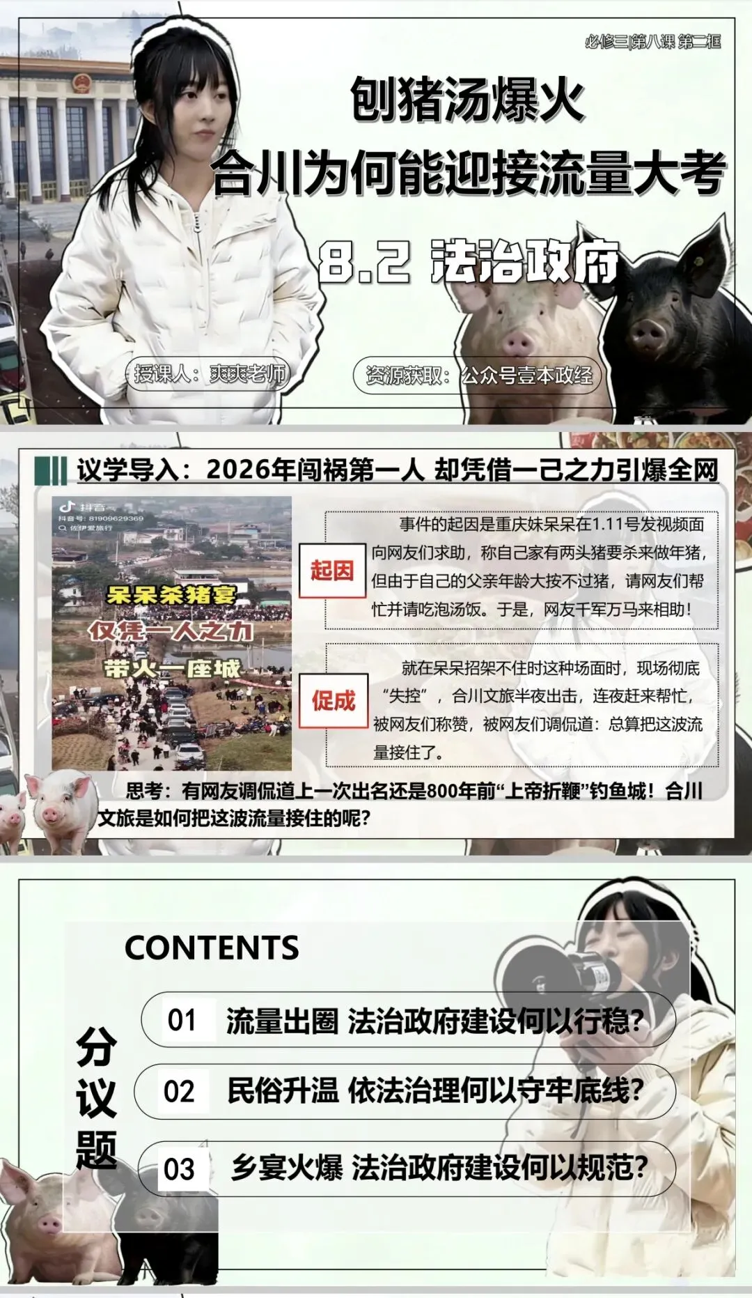 >优质课课件|2026高中政治必修三8.2法治政府+教学设计(刨猪汤爆火:合川为何能迎接流量大考,2026年最新)