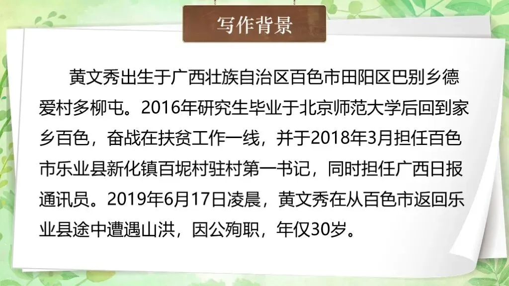 >「��公开课一等奖」七下《青春之光》课件 | 遇见黄文秀书记:青春之光里的时代担当!