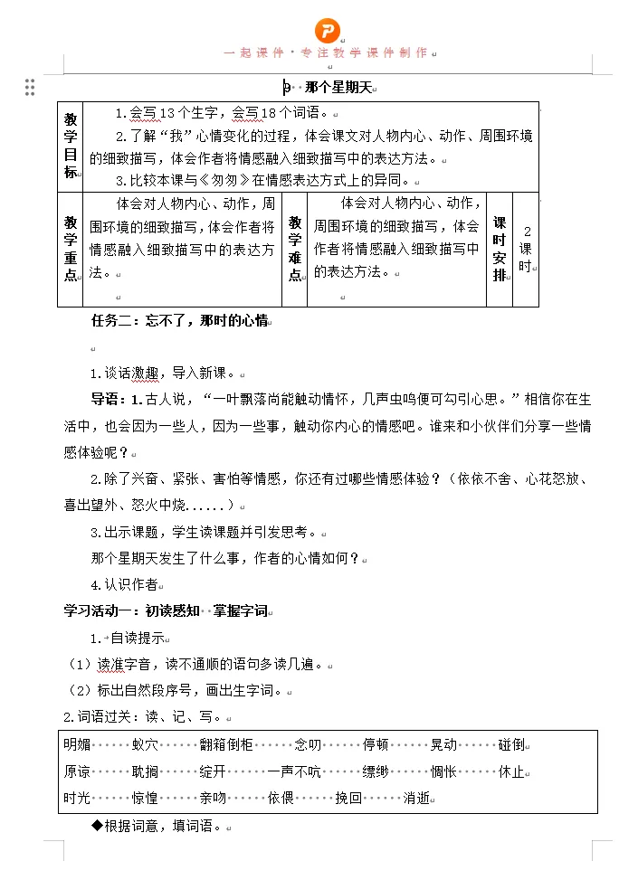 部编版六下语文第三单元《那个星期天》课件、教案