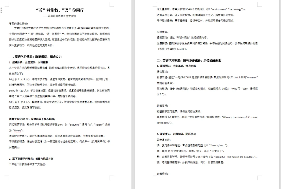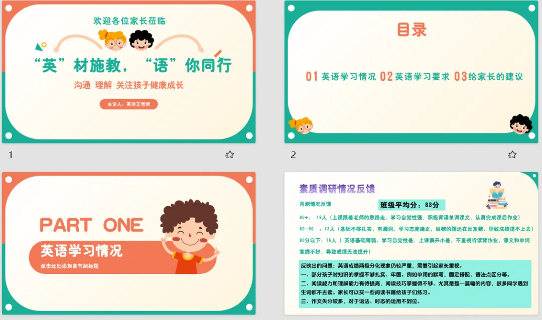 【家长会PPT】英语老师家长会精美成品课件《英材施教,语你同行》PPT+发言稿,文末附免费下载链接