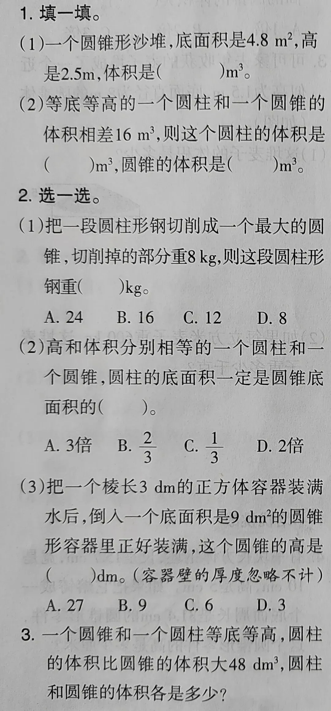 结论刚敲定,我趁机追问:“这个3倍关系,是随便一个圆柱和圆锥都成立吗?”