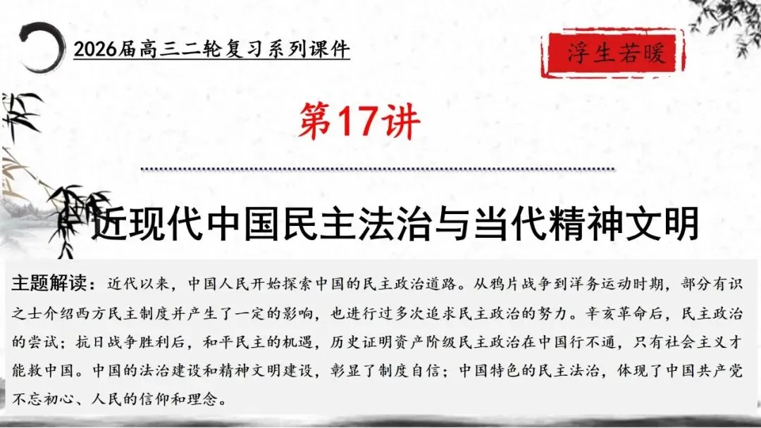 >精品课件 | 2026届高三历史二轮复习专题六:中国近现代政治制度与社会治理