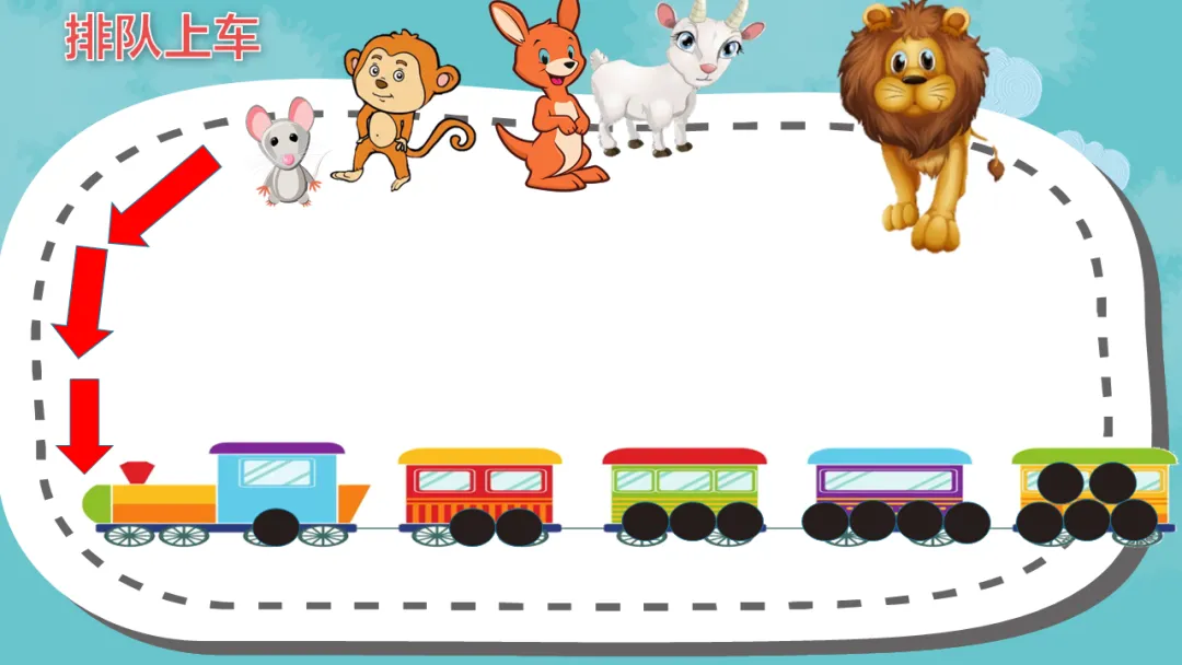 (2)一个跟着一个排队上车。